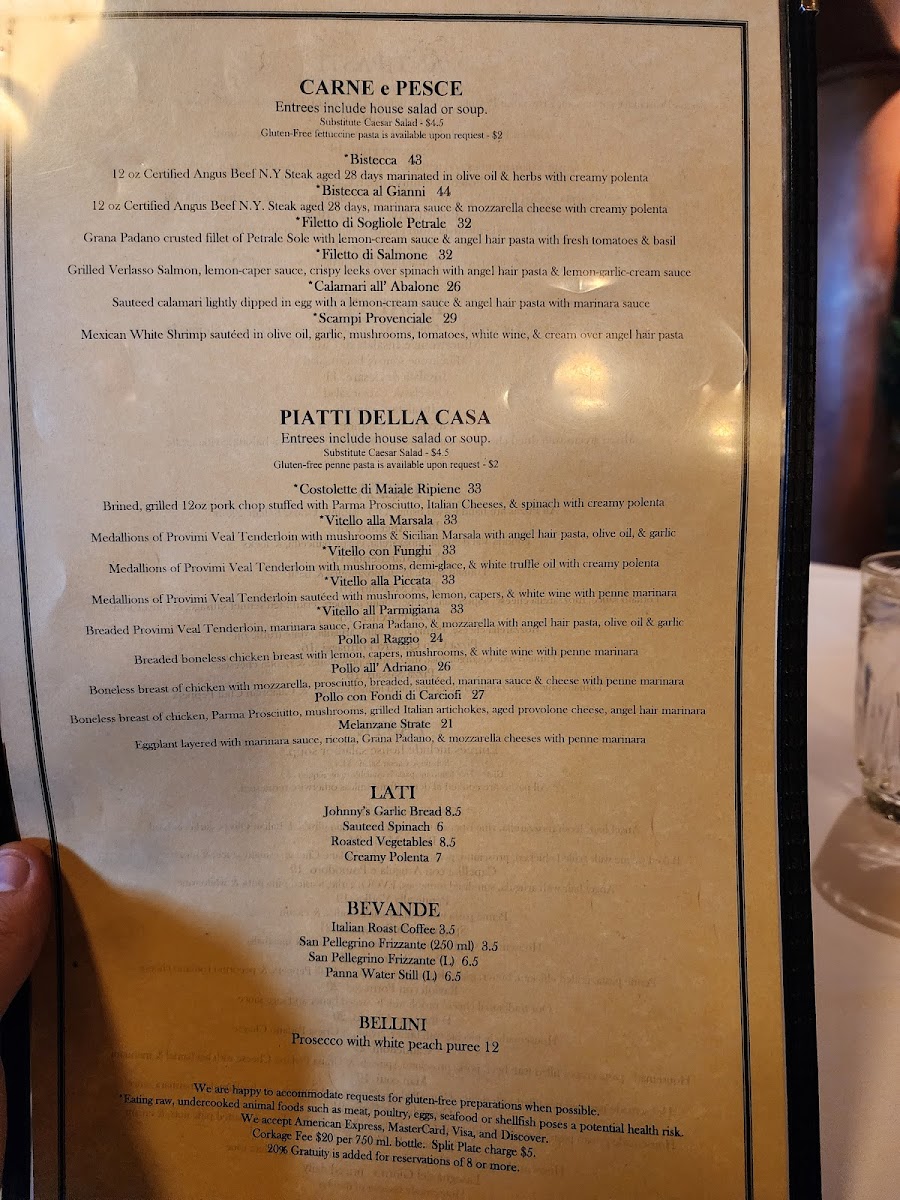 Personal experiences shared by customers speak volumes about the exceptional service and quality of food at Johnny's. As Jeff Sinnock remarked, the food was "awesome," with his veal cooked to perfection. Others, like Christopher Wilson, speak fondly of the authentic feel of the restaurant, stating it feels like home, reminiscent of family dinners with grandparents. Reviews consistently highlight the attentive staff who are ready to cater to your needs, ensuring you feel welcomed and valued during your visit.